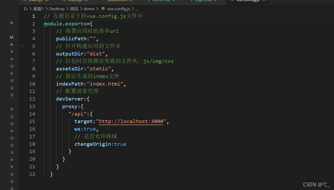 在项目根目录下 创建vue.config.js文件 注:此文件跟src是同级路径而不是包含关系