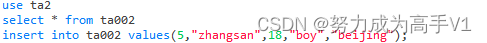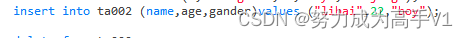 这里仅仅是向部分字段写入值。没有指定字段,会写如空。字段的顺序要和值的顺序保持一致。