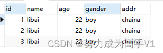 (addr 地址 varchar 限制50字符 default 默认值 “填写地址”)