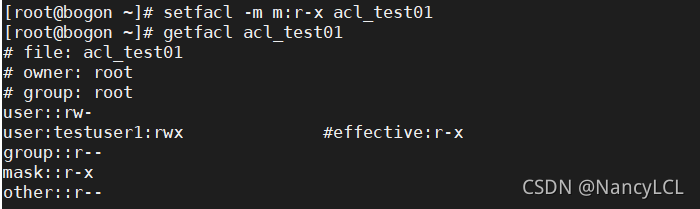 8.为刚刚创建的文件设置acl的mask: 权限为r-x
