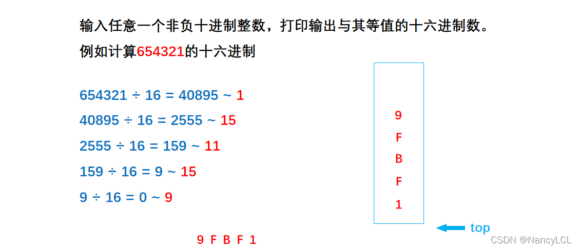十进制数转十六进制数即将十进制数一致除16,每次去余数,直至除16的结果0,余数倒序排列即可。如图: