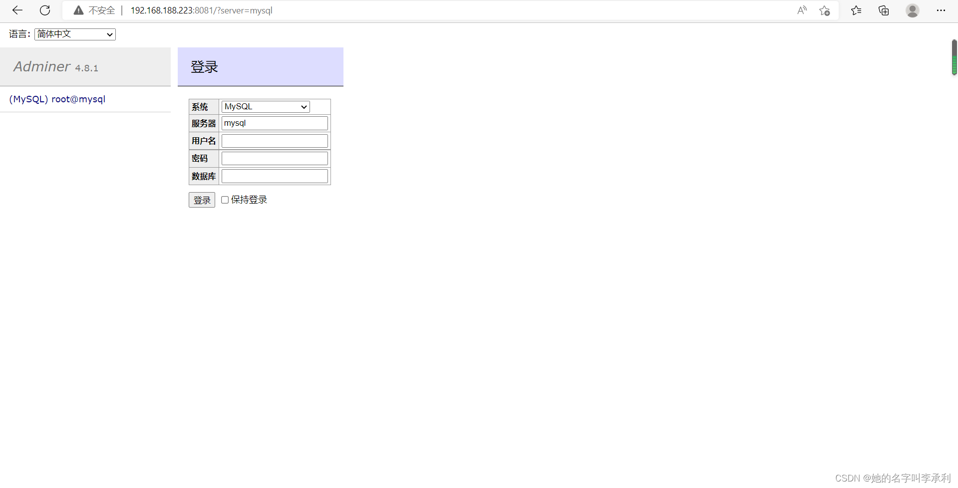3>. 访问宿主机8081端口,检测adminer容器的web的页面: