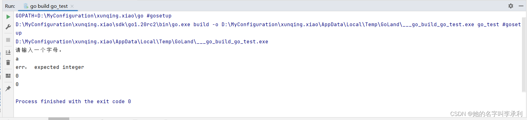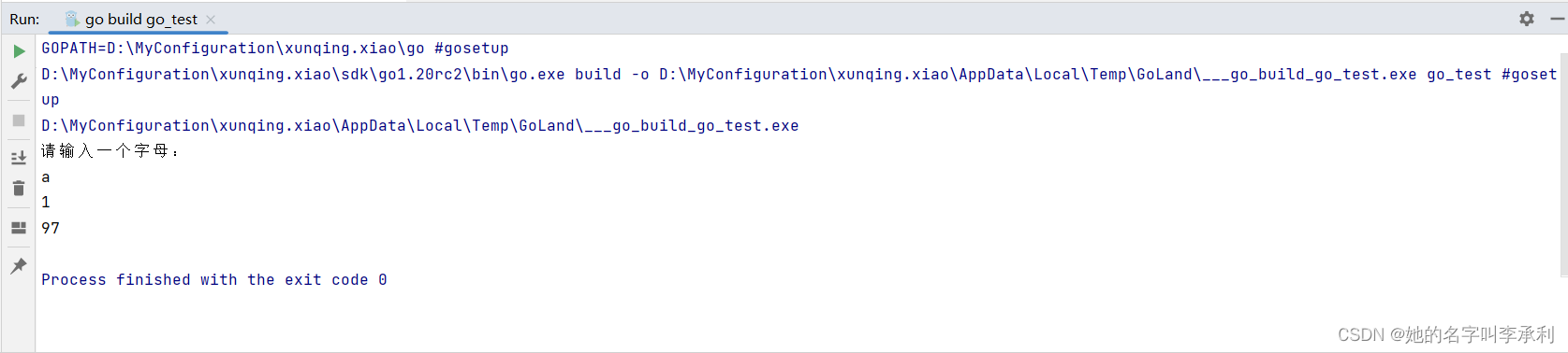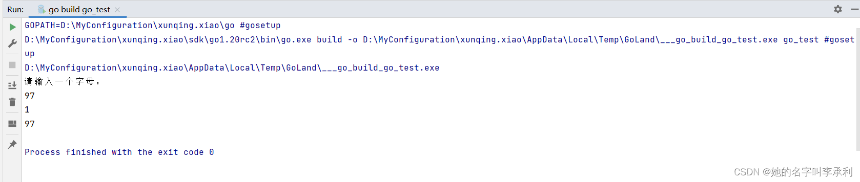 5、输入byte类型的数据:byte 类型是 uint8 的别名,代表了 ASCII 码的一个字符,因此在标准输入byte类型的变量时必须接受的是一个数字。例如: