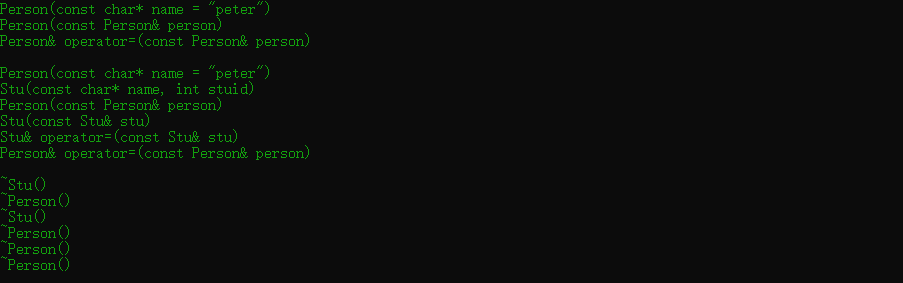 :Person(stu) //调用基类拷贝构造函数初始化基类成员
