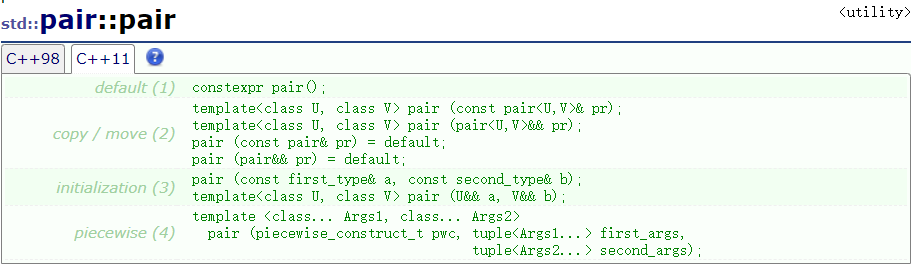 std::pair<int, double> p4(p1); //copy/move (2) 调用默认拷贝构造函数
