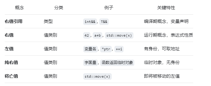 - 将亡值 Expiring Value,是有身份(有明确内存地址)但即将结束生命周期(资源可被窃取);