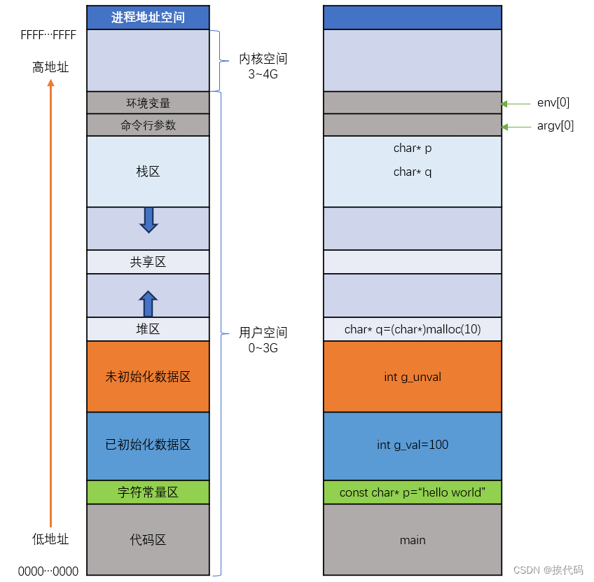 进程地址空间,会在进程的整个生命周期内存在,直到进程结束;地址空间本质上是进程看待内存的方式,抽象出来的概念,在内核中为struct mm_struct;区域的划分,即将线性地址空间划分成一个个的区域[start,end];其作用是可保护物理内存,不受进程的直接访问,可进行合法性校验;可让进程以同样的方式,来看待代码和数据;进程管理和内存管理是强耦合的,也可将进程管理和内存管理解耦;