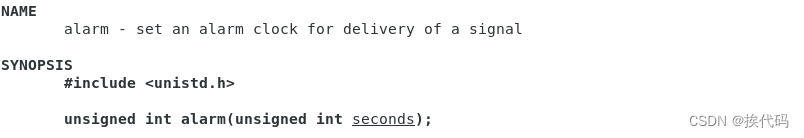- alarm函数,可设定一个闹钟,告诉内核在多少秒后给当前进程发送SIGALRM信号;
