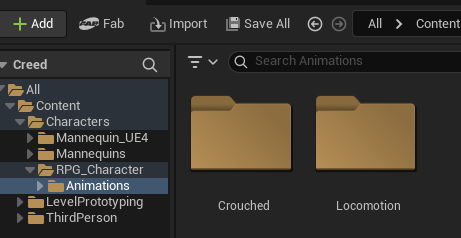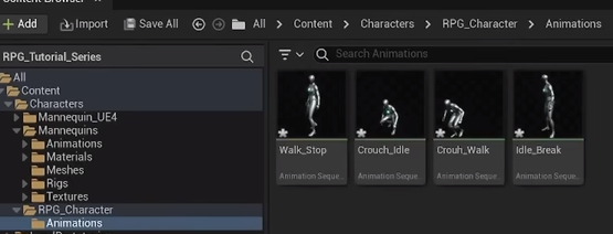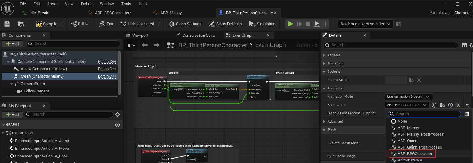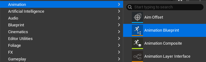 创建Animation Blueprint,命名为ABP_RPGCharacter: