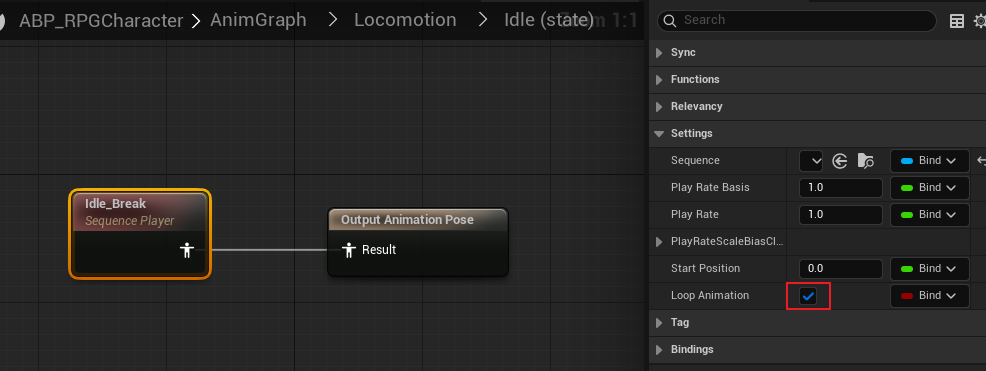 - 进入状态机,添加Idle状态,并添加Idle_Break动画序列;