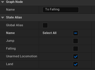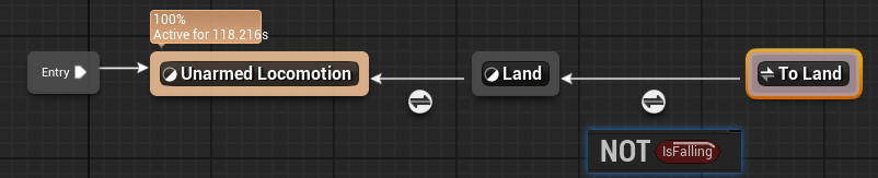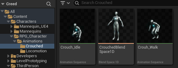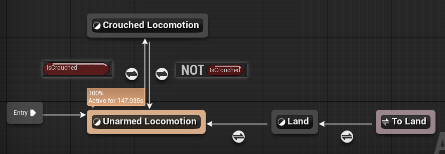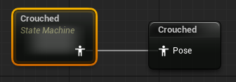 - 在动画蓝图内,创建新状态机Crouched,并添加状态Crouched Locomotion;