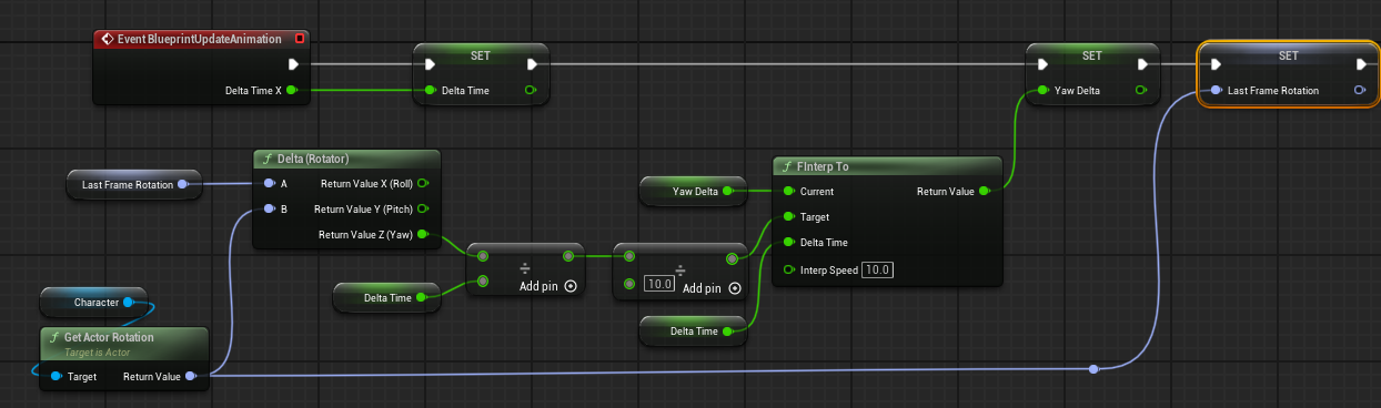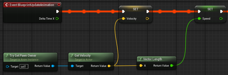 - 在事件图表内获取角色速度,并设置Speed变量;
