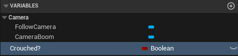 - 在角色蓝图BP_ThirdPersonCharacter内,创建Crouched?变量;