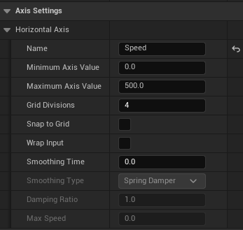 创建Blend Space 1D,命名为LocomotionBlendSpace1D,并设置Horizontal Axis参数,Maximum Axis Value参考角色运动组件的值;
