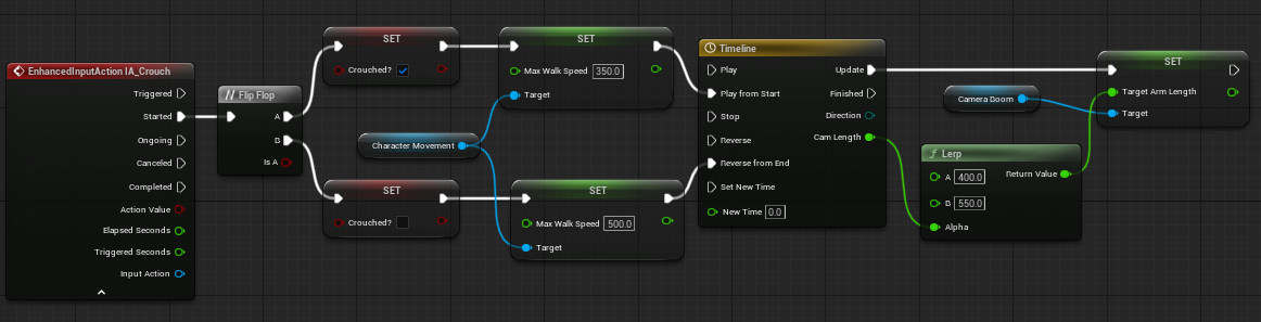 - 在动画蓝图事件图表内,设置IsCrouched变量;