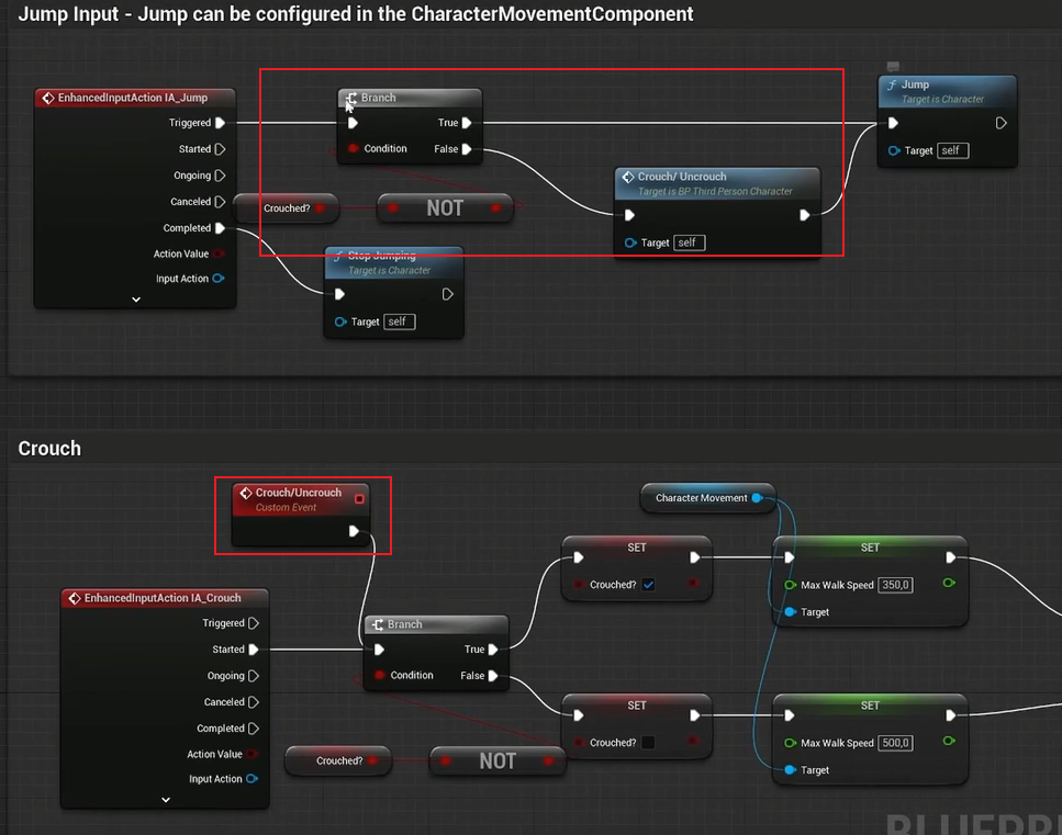 - 调整crouch动作条件,在蹲下时跳跃需先取消跳跃;