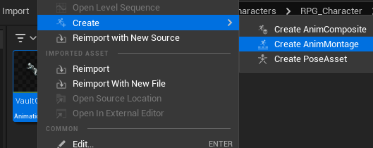 选择翻越的动画序列,右击创建动画蒙太奇;