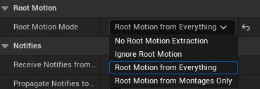 - 需在动画蓝图内Class Default中设置Root Motion Mode;