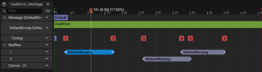 打开动画蒙太奇,并在Notifes轨道上创建Motion Warping;