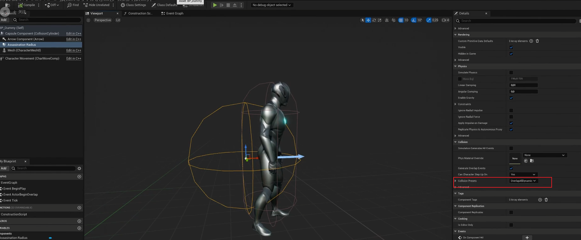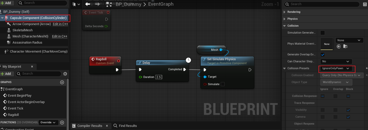 - 设置胶囊体组件碰撞预设IgnoreOnlyPawn;