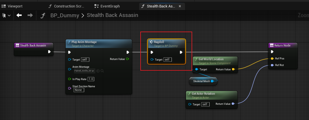 - 要在接口函数内调用Ragdoll事件,延迟2.5秒,避免同时播放蒙太奇;