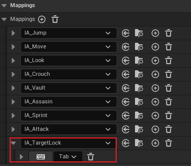 按下目标锁定输入动作(如Tab),玩家角色在相机方向球型追踪,并保存击中的对象 Hit Actor to TargetLock;