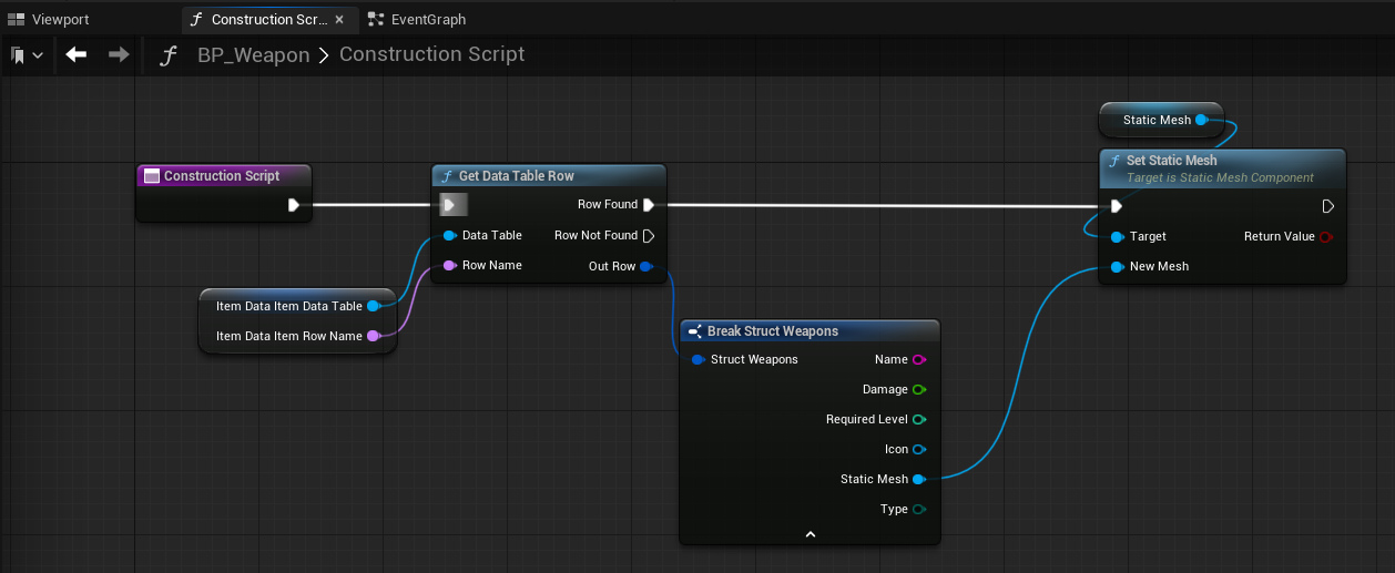 - 在构造脚本内,根据ItemData指定StaticMesh具体的内容;