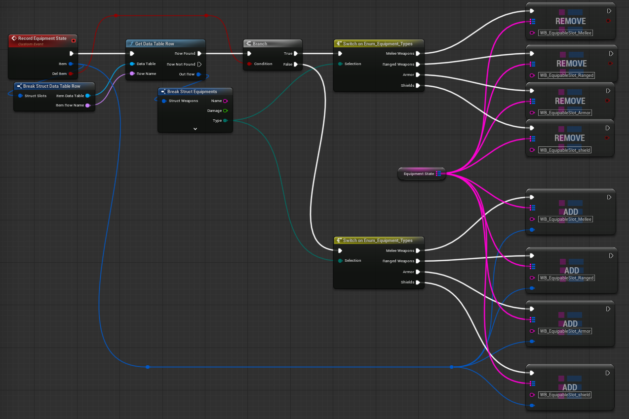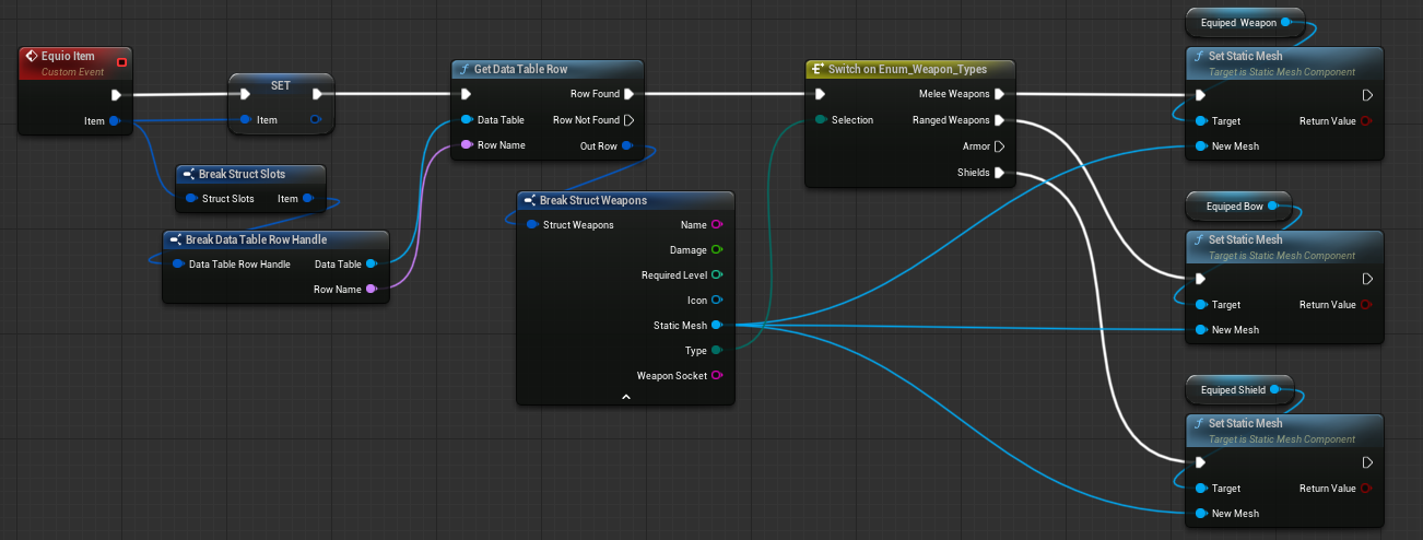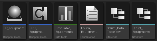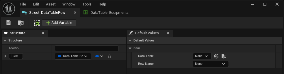 - 创建用于存储已有的装备数组变量MyEquipments,类型为Struct_DataTableRow;