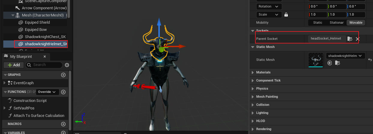 创建相应个数的静态网格体组件并指定socket,但不指定网格体;