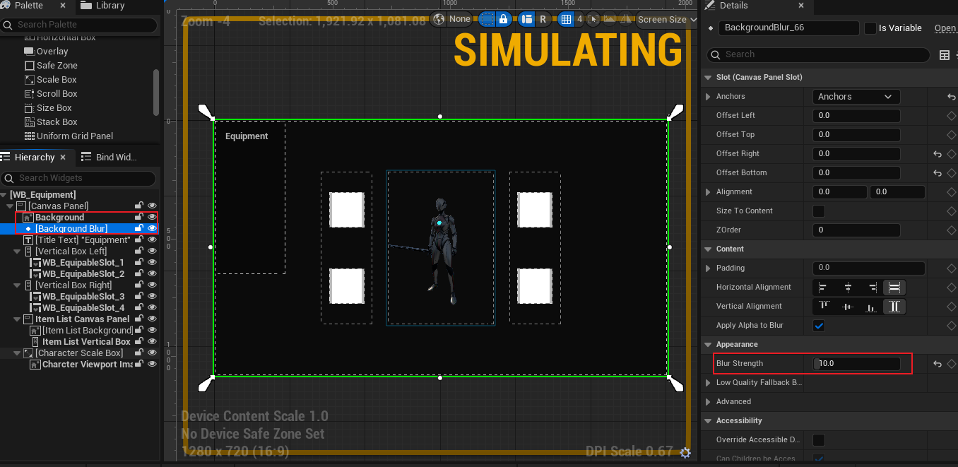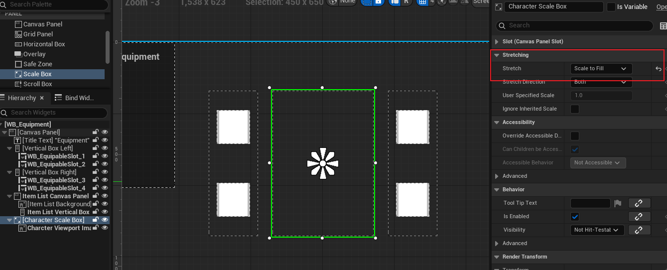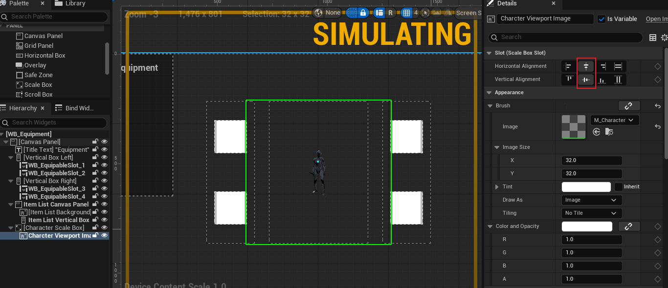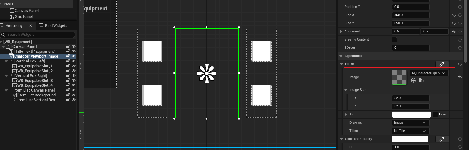 设置Charcter Viewport Image的brush中的image为M_CharacterEquipmentTextureTarget;