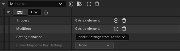 创建用于交互的输入动作IA_Interact,并设置具体按键;