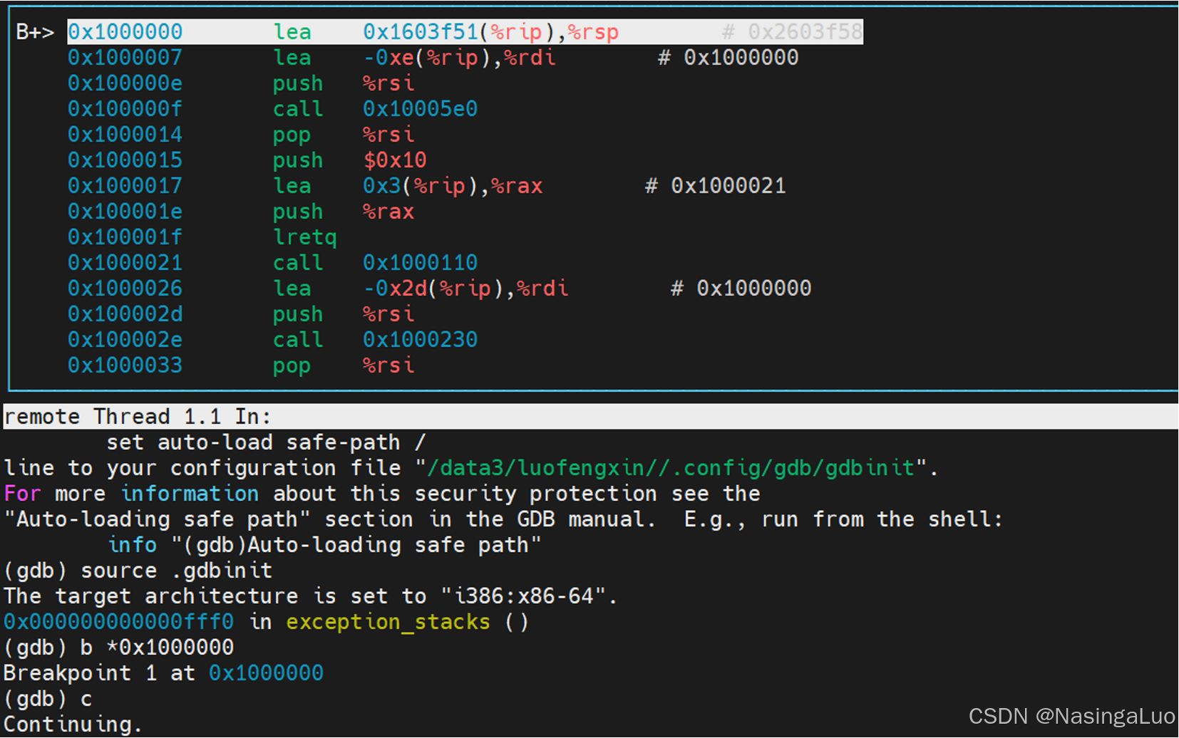 因此,使用gdb调试qemu的时候,断点打到0x01000000就能断到linux的第一句(因为这时候使用的是实模式,在使用保护模式之后,这个地址对应的虚拟地址是0xffffffff81000000)