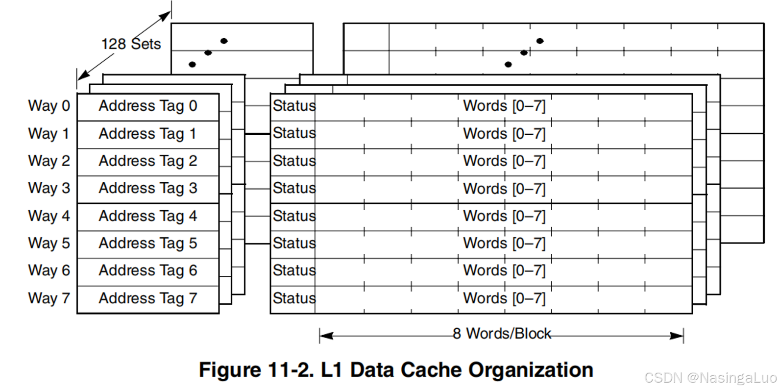 e500的缓存结构如下所示,每个cache line的大小为32字节。