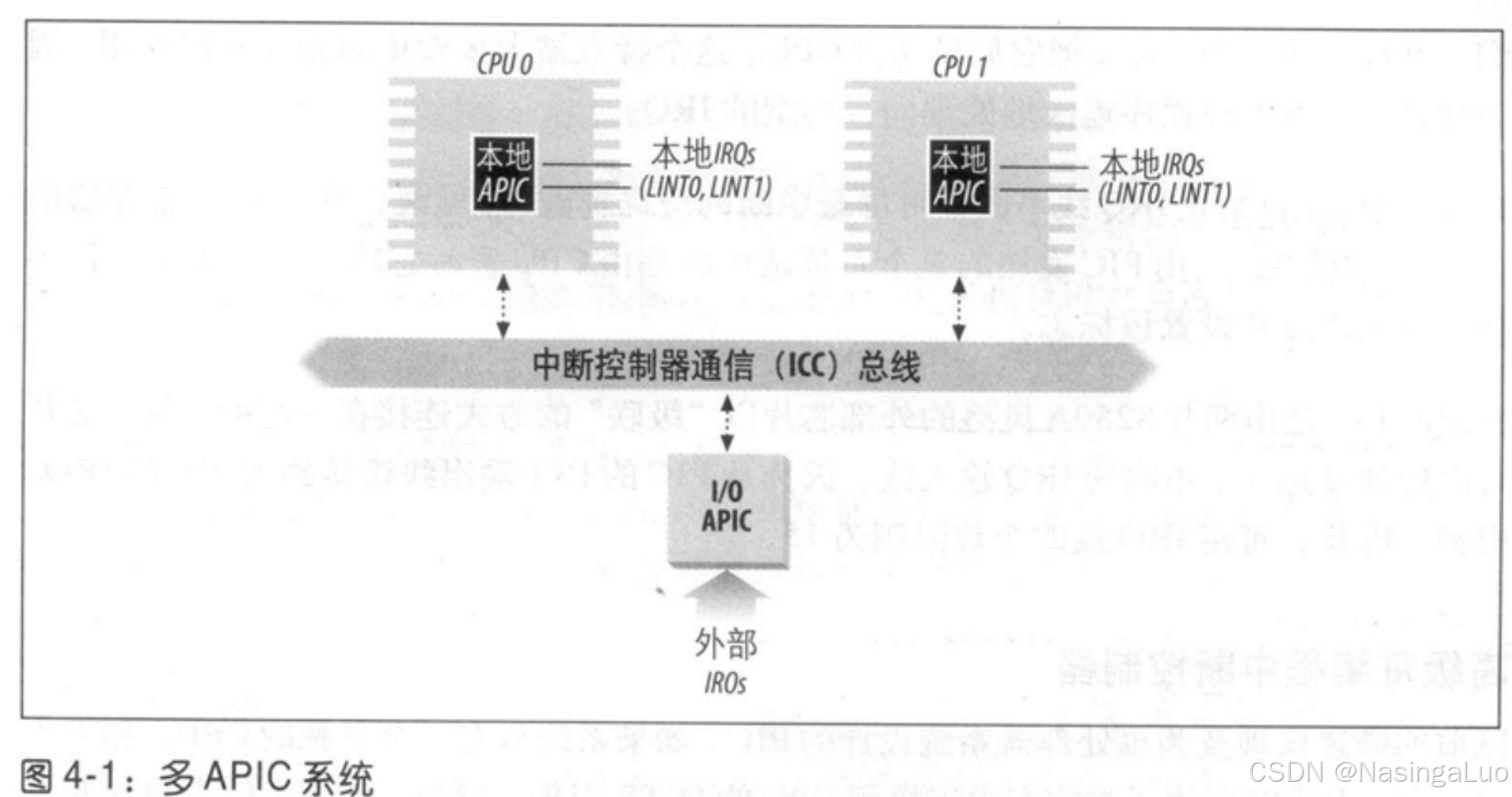 随着时代发展,中断控制器已经从PIC发展到了IO APIC。主板上包含了这两种中断控制器。此外,每个cpu都有一个本地APIC。