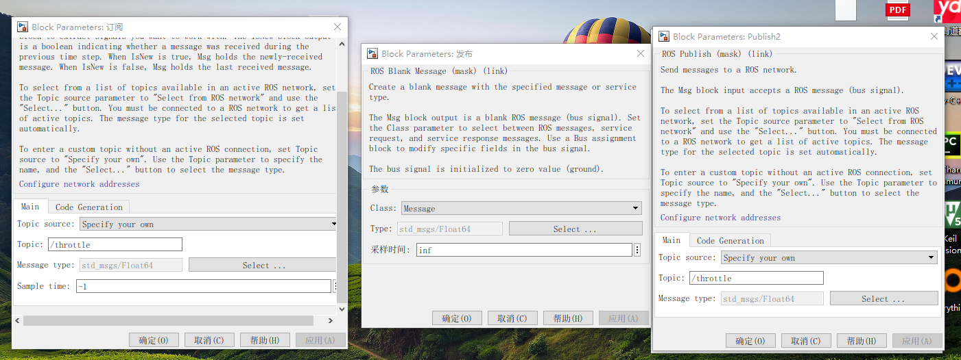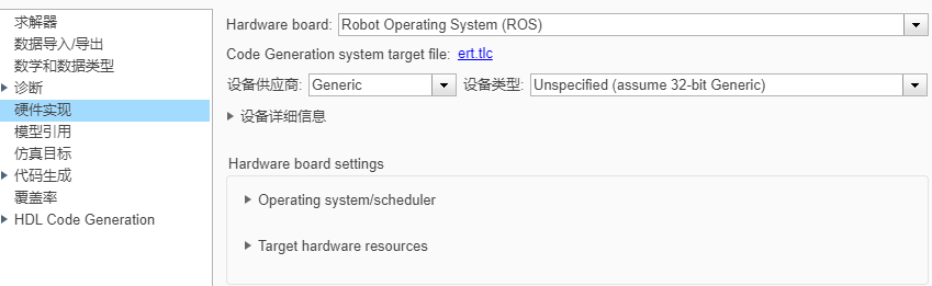 这是通讯及ROS编译完成后,smulink的运行部分及设置