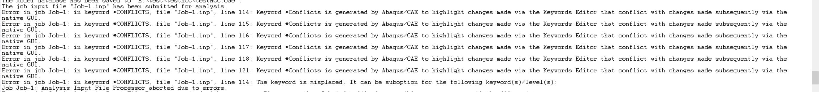 设置了冲突的状态变量(在keywords中自定义了状态变量孔隙比,但是在load中又赋予了模型孔隙比,导致冲突),我删除模型中的孔隙比后,报错: