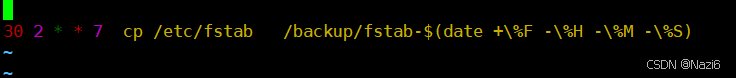 二、问题2:每周日凌晨2点30分,运行cp命令对/etc/fstab文件进行备份,存储位置为/backup/fstab-YYY-MM-DD-hh-mm-ss。