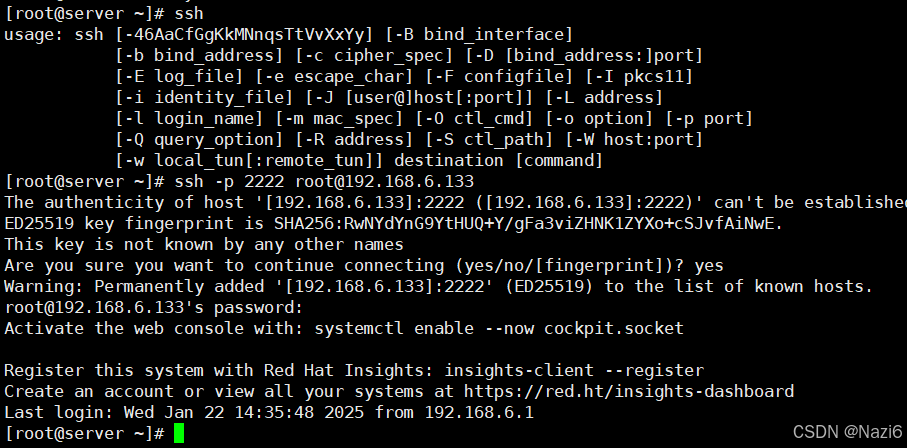 这里我们实验用telnet远程连接,这里我没有弄通,但我们不管,因为用telnet不安全,会看到我们的密码之类的隐私,所以我们今天主要学习怎么用ssh远程连接。