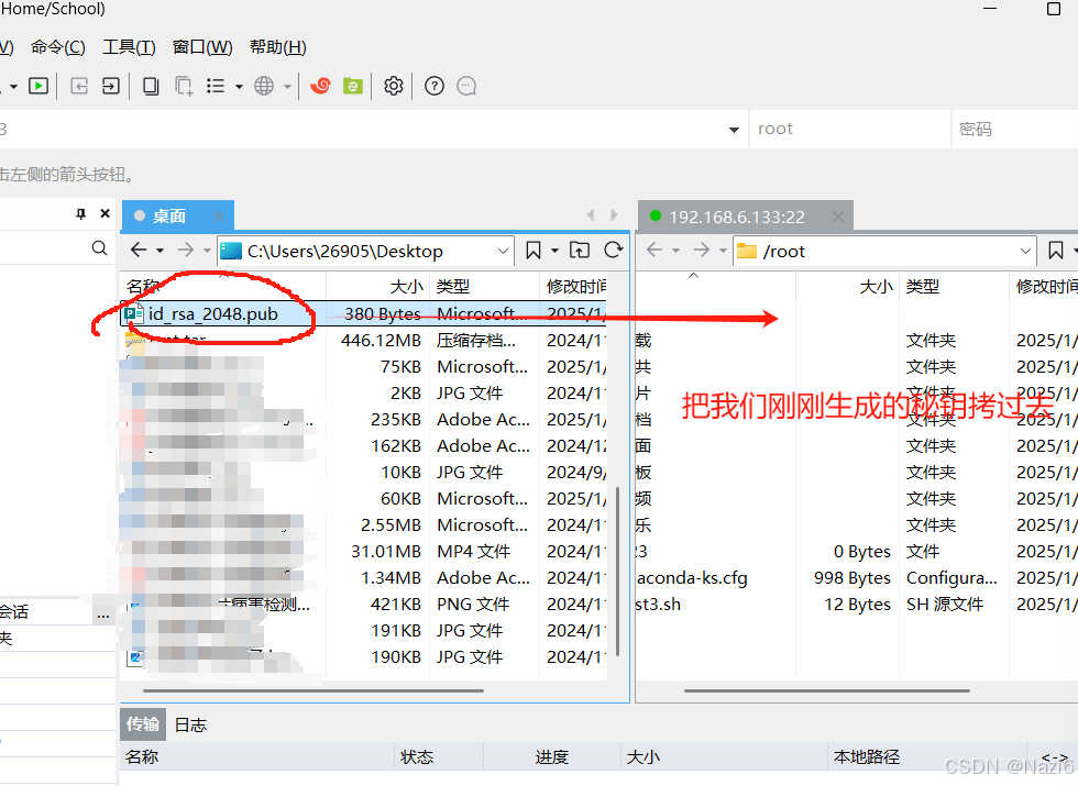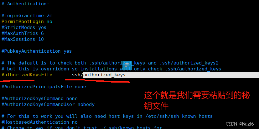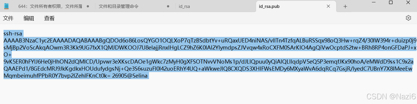 2.然后我们要把秘钥对中的公钥粘贴保存到服务器的文件里面