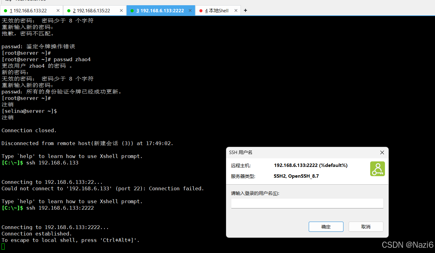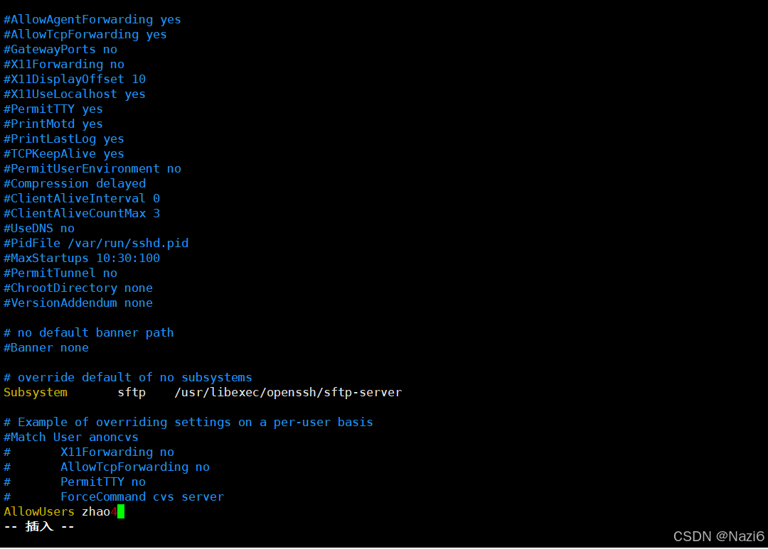 实验三:允许特定用户ssh登录,其他用户都无法登录(相当于设置一个白名单)