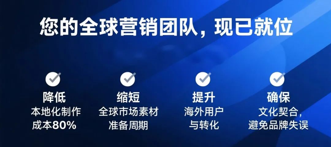 长期以来,国内企业出海面临 “内容本地化难、成本高、响应慢” 的痛点:多语言素材制作需对接翻译、设计等多方资源,成本占比超 40%;文化差异导致的营销 “水土不服”,更易错失市场机遇。