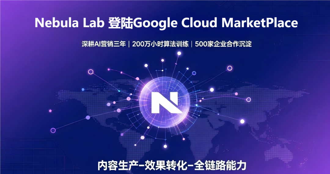 从微软云到Google Cloud MarketPlace,从服务国内企业到赋能全球客户,Nebula Lab 始终坚信:AI 营销的核心,是让技术真正理解商业逻辑、贴合行业特性。未来,我们将继续以 “技术创新” 为帆,以 “全球云生态” 为舟,助力更多企业穿越营销周期,实现增长突破。
