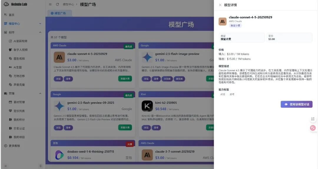Nebula API本身带有“新加坡血统”,不仅母公司星雲數據总部位于新加坡,而且是联合新加坡南洋理工大学研发的大模型集成平台,即可合规调用 Claude 4.5 的全部能力。