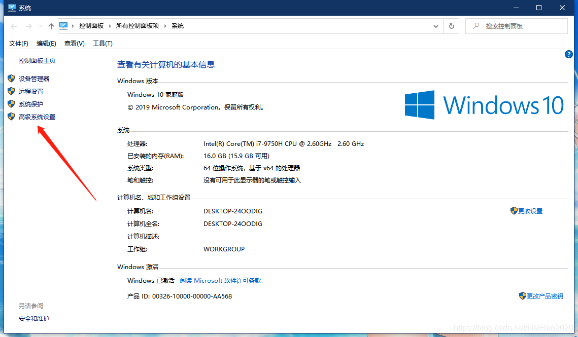 2.点击高级系统设置
