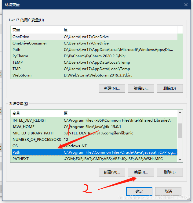 4.先在系统变量中找到Path变量,然后点击编辑