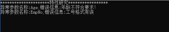 Console.WriteLine($"异常参数名称:{item.PropName};错误信息:{item.ErrMsg}");