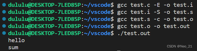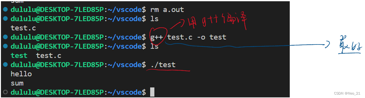 test.o 不是一个可执行程序(在linux中文件名会是浅绿色)。如果下一步需要继续链接成可执行程序,需要输入指令
