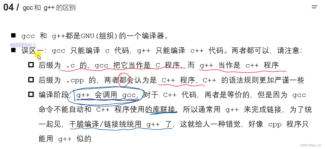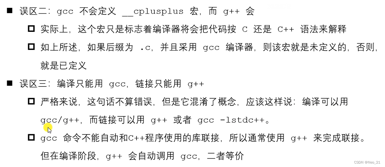 gcc无法在c++中使用库连接,当工程要使用多个文件时不方便完成链接,故一般使用g++较多。