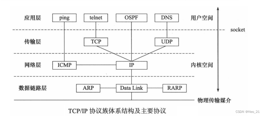 而且应用层是工作在操作系统中的用户态,传输层及以下则工作在内核态