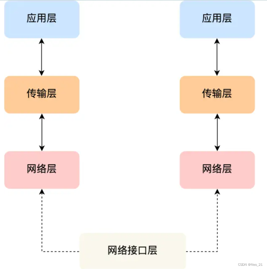 我们不希望传输层协议处理太多的事情,只需要服务好应用即可,让其作为应用间数据传输的媒介,帮助实现应用到应用的通信,而实际的传输功能就交给下一层,也就是网络层(Internet Layer)。